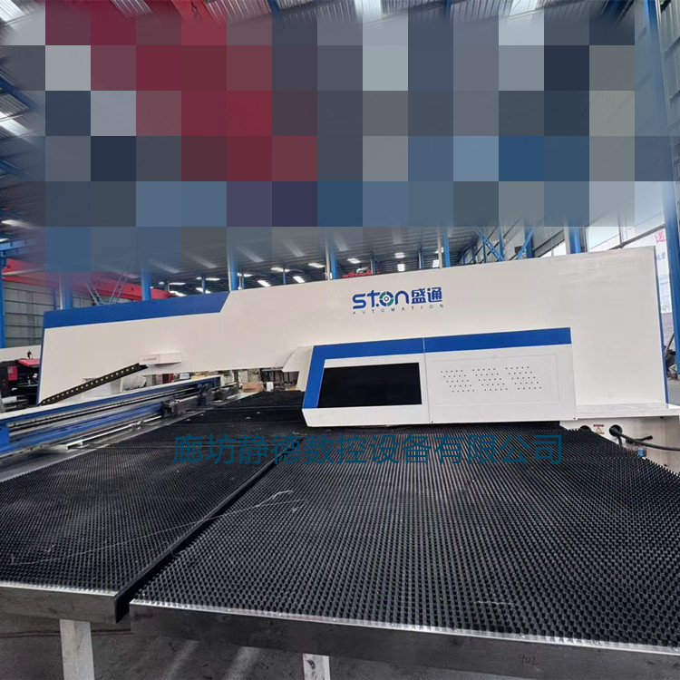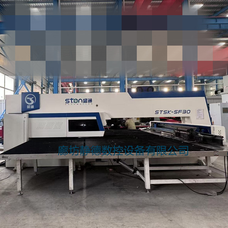高性价比_精品二手青岛盛通全电伺服数控转塔冲床SF30、数控冲床,冲压能力:30吨,32工位,2旋转工位,加工尺寸:2000*5000mm,2022年7月份出厂,成色:9.9成新,该机为全电伺服式冲床,现低价处理!预购从速!本机也可以加工滚筋,百叶窗,拉包,单双桥等特殊工艺。每台设备到店都要进行30多项检测,检修,各项功能、性能达到新机精度方可出售。该机已调试完毕,可现场试机,现场绘图,现场打板,现场尺测精度,保证正负十丝以内的新机精度。所售设备包安装、调试、培训,保修三个月,免费赠送编程软件,终身免费维护,24小时技术支持,终身配件供应,机会难得,预购从速。 廊坊静德数控设备有限公司 销售顾问:田永强13785632893可加微信