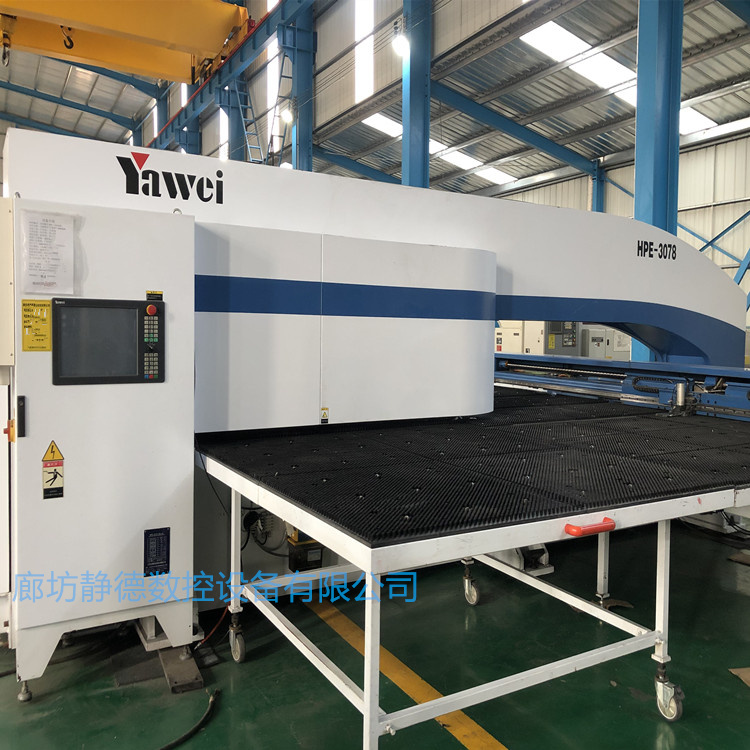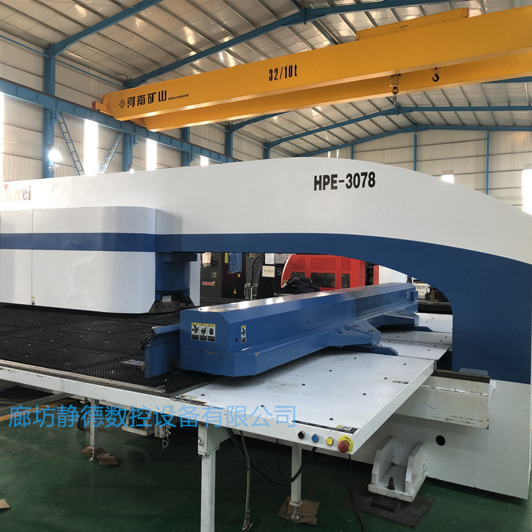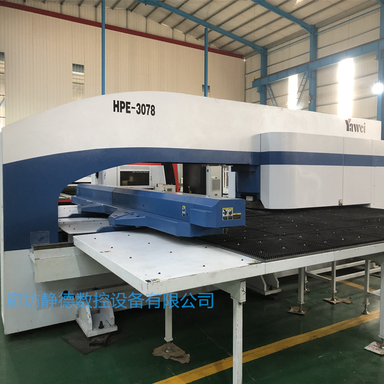 出售转让_高性价比_精品二手江苏亚威HPE3078全电伺服式数控转塔冲床、数控冲床,全电伺服式,冲压能力:30吨,西门子数控系统,38工位,2旋转工位, 加工尺寸:2000*5000MM,2019年7月份生产 ,9.9成新,每分钟冲次1800次,速度非常快,本机可以进行辊筋,滚切,打标,刻字,百叶窗,拉包,单双桥等特殊工艺加工。该机采用亚威新式床身,机身重达18吨,冲压更稳定,购入后使用不多,全电伺服式,节能高效,环保,速度快!每台设备到店都要进行30多项检测,各项功能性能达到新机精度方可销售!设备已调试完毕,可现场试机!现场绘图,现场打板,现场尺测精度,保证正负十丝以内的新机精度!所售设备 免费安装、调试、培训,保修三个月,赠送编程软件,24小时技术支持,终身配件供应,机会难得,预购从速。廊坊静德数控设备有限公司 销售顾问:田永强 13785632893可加微信。