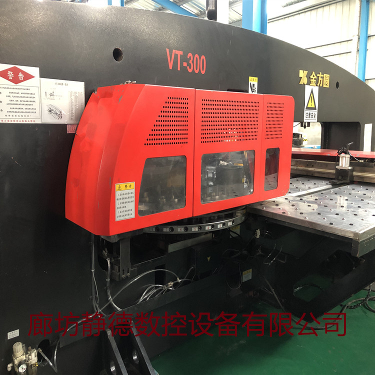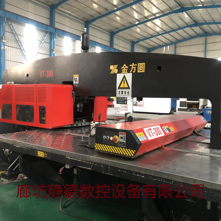 出售转让_高性价比_精品二手江苏金方圆VT300数控转塔冲床 数控冲床,冲压能力:30吨,该机配备日本发那科数控系统,德国哈雷液压系统,32工位,2旋转工位,加工板面:1250*2500mm,2014年10月份生产 ,9.9成新,每分钟冲次600次,本设备可以加工辊筋,百叶窗,拉包,单双桥等特殊工艺。该机已调试完毕,可现场试机,现场绘图,现场打板,现场尺测精度,保证正负十丝以内的新机精度。所售设备包安装、调试、培训,保修三个月,免费赠送编程软件,24小时技术支持,终身配件供应,机会难得,预购从速。 廊坊静德数控设备有限公司 销售顾问:田永强13785632893可加微信
