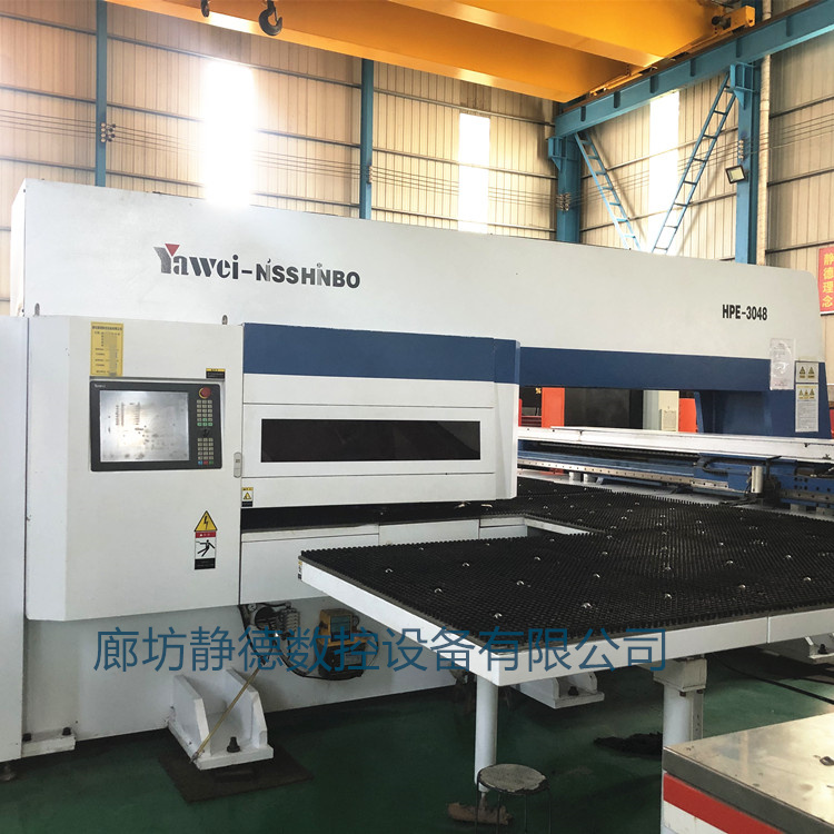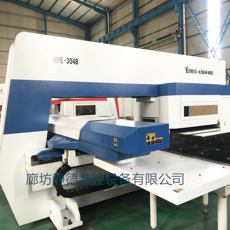 出售转让_高性价比_精品二手江苏亚威全电伺服数控转塔冲床、数控冲床HPE3048,全电伺服式,冲压能力:30吨,德国西门子数控系统,38工位,2旋转工位, 加工尺寸:1250*5000MM,2017年9月产 ,9.5成新,每分钟冲次高达1800次,速度快,本机可以进行滚筋,滚切,打标,刻字,百叶窗,拉包,单双桥等特殊工艺加工。该机采用亚威新式床身,机身重达18吨,冲压更稳定,购入后使用不多,全电伺服式,节能高效,环保,速度快!每台设备到店都要进行30多项检测检修,各项功能性能达到新机精度方可出售!设备已调试完毕,可现场试机,现场绘图,现场打板,现场尺测精度,保证正负十丝以内的新机精度!所售设备 免费安装、调试、培训,保修三个月,赠送编程软件,24小时技术支持,终身配件供应,机会难得,预购从速。廊坊静德数控设备有限公司 销售顾问:田永强 13785632893可加微信。