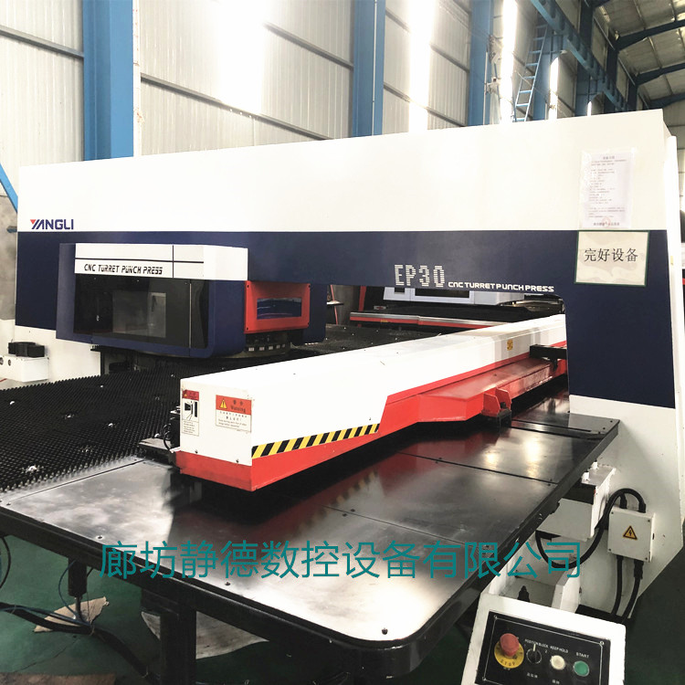 出售转让_高性价比_精品二手江苏扬力数控冲床 全电伺服数控转塔冲床型号:EP30,2022年3月出厂,冲压能力30吨,加工板材尺寸:1250*5000MM,30工位,2旋转工位,日本发那科数控系统,该机购入后几乎无使用,成色:全新!全电伺服式,可以进行滚筋、滚切、打标等特殊工艺加工。每台设备到店,都要进行30多项检测,各项功能、性能、达到新机精度方可出售!设备已调试完毕,可现场试机,现场冲孔,现场尺测精度,保证正负十丝的新机精度。我公司免费安装、调试、培训,保修三个月,24小时技术支持,终身配件供应,机会难得,预购从速。廊坊静德数控设备有限公司 销售顾问:田永强:13785632893可加微信