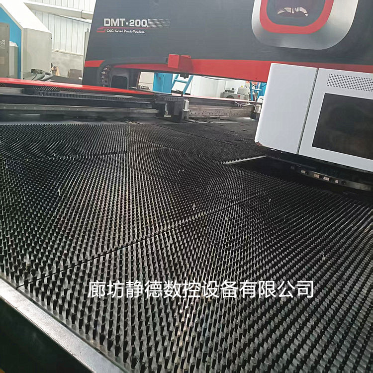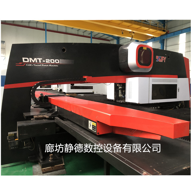 出售转让_高性价比_精品二手江苏金方圆 双电伺服式数控转塔冲床 数控冲床DMT200,32工位,2旋转工位,冲压能力:20吨,该机配备德国贝弗数控系统,采用自主创新的双伺服电机作为主动力源,主传动部分节能72%,整机效率提高53%,噪声降低5-8dB,加工尺寸:1250*5000mm,2014年7月生产 ,成色:9.9成新!每分钟冲次1000次,本机可加工滚筋、百叶窗,拉包,单双桥等特殊工艺。每台设备到店都要进行30多项检测,各项功能、性能达到新机精度方可出售。该机已调试完毕,可现场试机,现场绘图,现场打板,现场尺测精度,保证正负十丝以内的新机精度。所售设备包安装、调试、培训,保修三个月,免费赠送编程软件,24小时技术支持,终身配件供应,机会难得,预购从速。 廊坊静德数控设备有限公司 销售顾问:田永强13785632893可加微信