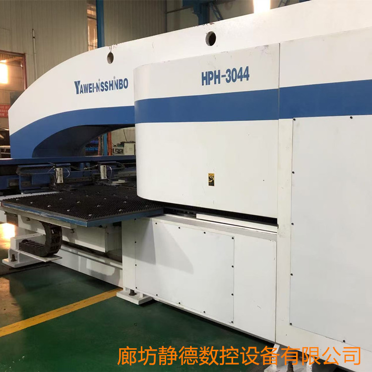 出售转让_高性价比_精品二手江苏亚威数控冲床 数控转塔冲床HPH3044,冲压能力:30吨,液压式,德国西门子系统,36工位,2旋转 工位, 加工尺寸:1250*2500MM,2015年5月份出厂,成色:9.5成新!本机可以进行百叶窗,单双桥等特殊工艺加工。每台设备到店都要进行30多项检测,检修,确保各项功能性能达到新机水平方可出售!已调试完毕,可现场试机!现场绘图、现场打版,现场尺测精度、保证正负十丝以内的新机精度。我公司所售设备包安装、调试、培训,保修三个月,24小时线上技术支持,免费赠送编程软件,终身配件供应,终身维护,机会难得,预购从速。廊坊静德数控设备有限公司 联系人:田永强13785632893可加微信。