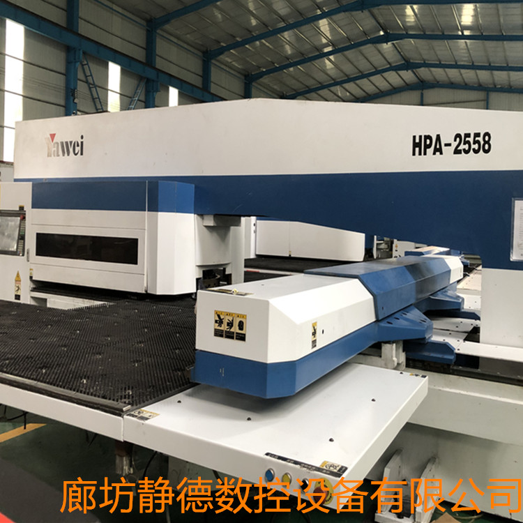 出售转让精品二手亚威 伺服 数控转塔冲床、数控冲床 型号:HPA2558,全电伺服式,9.9成新,冲压能力:25吨,德国西门子数控系统,38工位,2旋转工位, 加工尺寸:1500*5000MM,超宽超大版面,2019年5月产 ,每分钟冲次1800次,速度快,本机可以进行滚筋,滚切,打标,刻字,百叶窗,拉包,单双桥等特殊工艺加工。该机采用亚威新式床身,机身重达18吨,冲压更稳定,购入后使用不多,全电伺服式,节能高效,环保,速度快!每台设备到店都要进行30多项检测,各项功能性能达到新机精度方可销售!设备已调试完毕,可现场试机!现场绘图,现场打板,现场尺测精度,保证正负十丝以内的新机精度!所售设备 免费安装、调试、培训,保修三个月,赠送编程软件,24小时技术支持,终身配件供应,机会难得,预购从速。廊坊静德数控设备有限公司 销售顾问:田永强 13785632893可加微信。