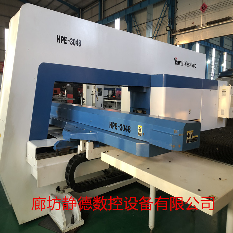 出售转让精品二手江苏亚威全电伺服数控转塔冲床、数控冲床HPE3048,冲压能力:30吨,德国西门子数控系统,26工位,2旋转工位, 加工尺寸:1250*5000MM,2016年10月产 ,9.9成新,全电伺服式,速度快,每分钟冲次高达1800次,本机可以进行滚筋,滚切,打标,刻字,百叶窗,拉包,单双桥等特殊工艺加工。该机采用亚威新式床身,机身重达18吨,冲压更稳定,购入后使用不多,全电伺服式,节能高效,环保,速度快!每台设备到店都要进行30多项检测检修,各项功能性能达到新机精度方可出售!设备已调试完毕,可现场试机,现场绘图,现场打板,现场尺测精度,保证正负十丝以内的新机精度!所售设备免费安装、调试、培训,保修三个月,赠送编程软件,24小时技术支持,终身配件供应,机会难得,预购从速。廊坊静德数控设备有限公司 销售顾问:田永强 13785632893可加微信。 廊坊静德数控设备有限公司专业销售精品二手数控冲床、数控转塔冲床、数控折弯机、 数控剪板机、智能柔性折弯中心、母线机等精品二手钣金设备。 原价60—70万、70—80万的设备,只卖10几万,20几万,性价比非常高!现货有百十台,全部现场试机,保证新机精度。 了解更多二手设备资源,请致电--销售顾问:田永强13785632893可加微信。 常年求购数控冲床、数控转塔冲床、数控折弯机、数控剪板机、智能柔性折弯中心、母线机、激光切割机等数控钣金设备