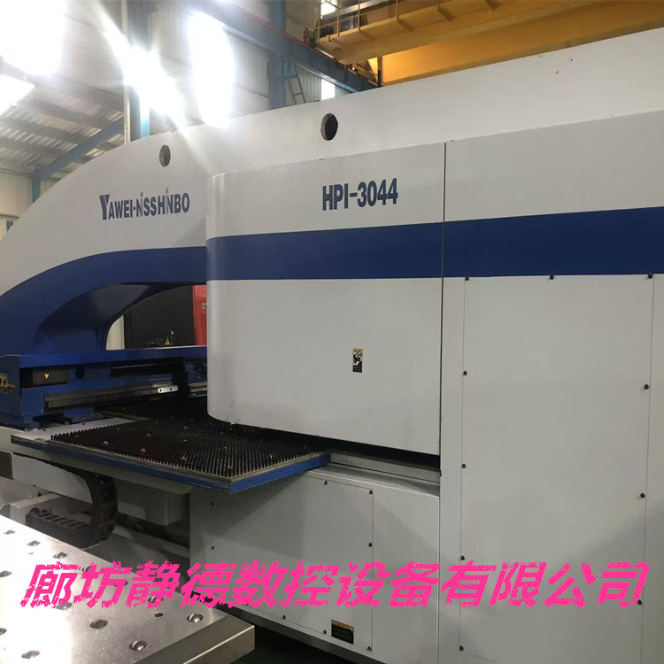 出售转让_高性价比_精品二手江苏亚威 数控转塔冲床 数控冲床HPI3044,油压伺服冲,冲压能力:30吨,36工位,2旋转工位,加工尺寸:1250*2500mm,2011年4月份出厂 ,9.5成新,该机为油压伺服式冲床,更快,更省电,可以进行滚筋,打标,刻字等特殊工艺加工!该机购入后安装少用,成色很新。 每台设备到店都要进行30多项检测,各项功能性能达到新机精度方可出售!设备已调试完毕,可现场试机,现场打板,现场尺测精度,保证设备正负十丝以内的新机精度。所售设备我公司免费安装、调试、培训员工、保修三个月。 廊坊静德数控设备有限公司 销售顾问:田永强13785632893可加微信。