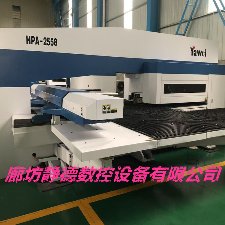 出售转让_高性价比_精品二手江苏亚威 全电伺服式数控转塔冲床、数控冲床HPA2558,9.9成新,冲压能力:25吨,德国西门子数控系统,38工位,2旋转工位, 加工尺寸:1500*5000MM,超宽超大版面,2019年12月产 ,每分钟冲次1800次,速度快,本机可以进行滚筋,滚切,打标,刻字,百叶窗,拉包,单双桥等特殊工艺加工。该机采用亚威新式床身,采用高强度铸造合金钢床身,重达18吨,冲压更稳定,购入后使用不多,全电伺服式,具有低能耗,低噪音,速度快的特点!每台设备到店都要进行30多项检测,各项功能性能达到新机精度方可销售!设备已调试完毕,可现场试机!现场绘图,现场打板,现场尺测精度,保证正负十丝以内的新机精度!所售设备 免费安装、调试、培训,保修三个月,赠送编程软件,24小时技术支持,终身配件供应,机会难得,预购从速。廊坊静德数控设备有限公司 销售顾问:田永强 13785632893可加微信。