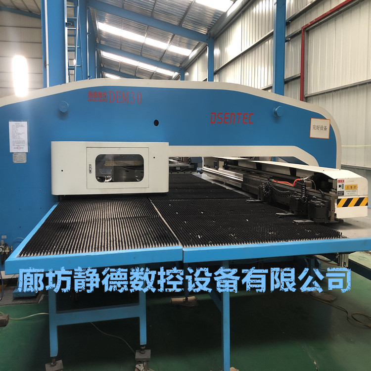 出售转让_高性价比_精品二手扬州鼎盛伺服式数控转塔冲床 数控冲床 型号:DEM30-1250,冲压能力:30吨,伺服式,日本发那科数控系统,32工位,2旋转工位, 加工尺寸:1250*5000MM,2017年3月份生产 ,成色:9.5成新,该机为伺服式速度更快,更省电 ,可以进行滚筋,打标,刻字等特殊工艺加工!本机可以进行,百叶窗,拉包,单双桥等特殊工艺加工。设备已调试完毕,可现场试机,现场尺测精度,保证正负十丝以内的新机精度。我公司负责设备安装、调试、培训,保修三个月,24小时技术支持,终身配件供应,免费赠送编程软件,终身免费维护,机会难得,预购从速。廊坊静德数控设备有限公司 联系人:田永强13785632893可加微信