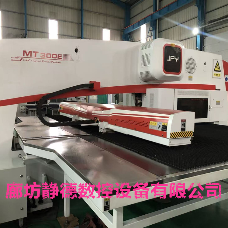 出售转让_高性价比_精品二手全新江苏金方圆MT300E全电伺服式数控转塔冲床 数控冲床 金方圆产,全电伺服冲,冲压能力:30吨,32工位,2旋转工位,加工尺寸:1500*5000MM,大板面,2020年7月出厂 ,该机为全电伺服式冲床,更快,更省电,可以进行滚筋,打标,刻字等特殊工艺加工!成色:全新!该机购入后未用,开机时间300小时 现挥泪出售,机会难得,预购从速!每台设备到店都要进行30多项检测,各项功能性能达到新机精度方可出售!设备已调试完毕,可现场试机,现场打板,现场尺测精度,保证设备正负十丝以内的新机精度。所售设备我公司免费安装、调试、培训员工、保修三个月。 廊坊静德数控设备有限公司 销售顾问:田永强13785632893可加微信