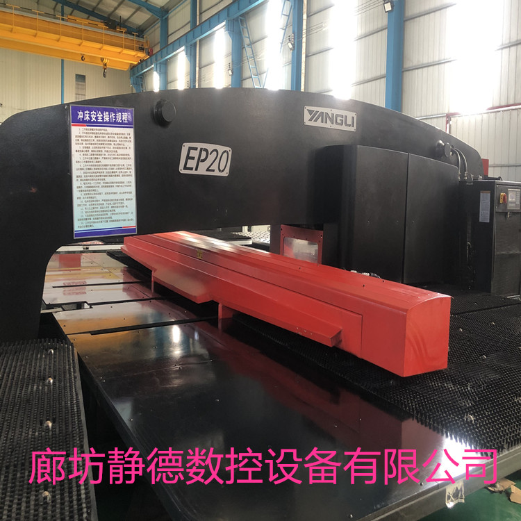 出售转让_高性价比_精品二手江苏扬力EP20全电伺服数控转塔冲床 数控冲床,2018年5月出厂,冲压能力:20吨,加工板材尺寸:1250*5000MM,30工位,2旋转工位,日本发那科数控系统,该机购安装少用,成色:9.9成新!全电伺服式,可以进行滚筋、滚切、打标等特殊工艺加工。每台设备到店都要进行30多项检测检修,各项功能、性能、达到新机标准方可出售!设备已调试完毕,可现场试机,现场冲孔,现场尺测精度,保证正负十丝以内的新机精度。我公司免费安装、调试、培训,保修三个月,24小时电话视频技术支持,终身成本价供应配件,机会难得,预购从速。廊坊静德数控设备有限公司 销售顾问:田永强13785632893可加微信