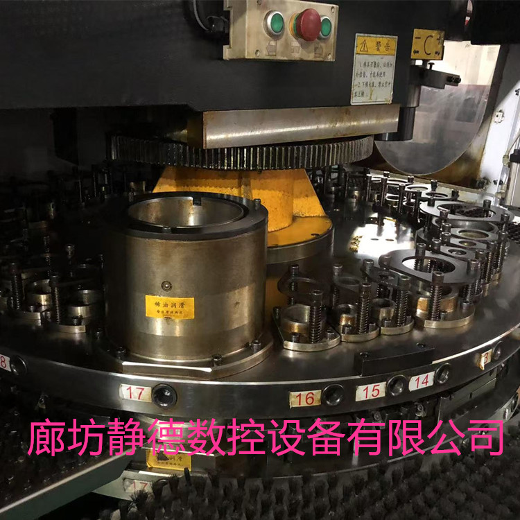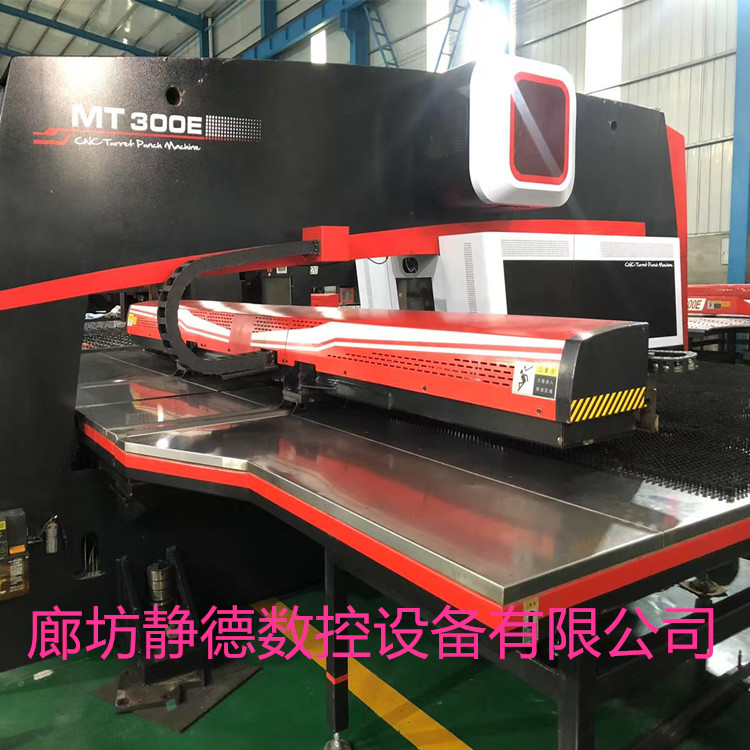 出售转让精品二手江苏金方圆MT300E全电伺服式数控转塔冲床 数控冲床 金方圆产,全电伺服冲,冲压能力:30吨,32个工位,2个旋转工位,加工尺寸:1250*5000MM大板面,2015年6月出厂 ,成色:9.5成新,该机为全电伺服式冲床,速度更快,更省电,可以进行滚筋,打标,刻字等特殊工艺加工!设备已调试完毕,可现场试机,现场打板,现场尺测精度,保证设备正负十丝以内的新机精度。所售设备我公司免费安装、调试、培训员工、保修三个月。 廊坊静德数控设备有限公司 销售顾问:田永强13785632893可加微信。