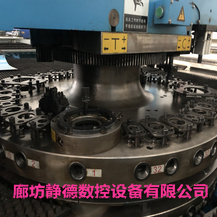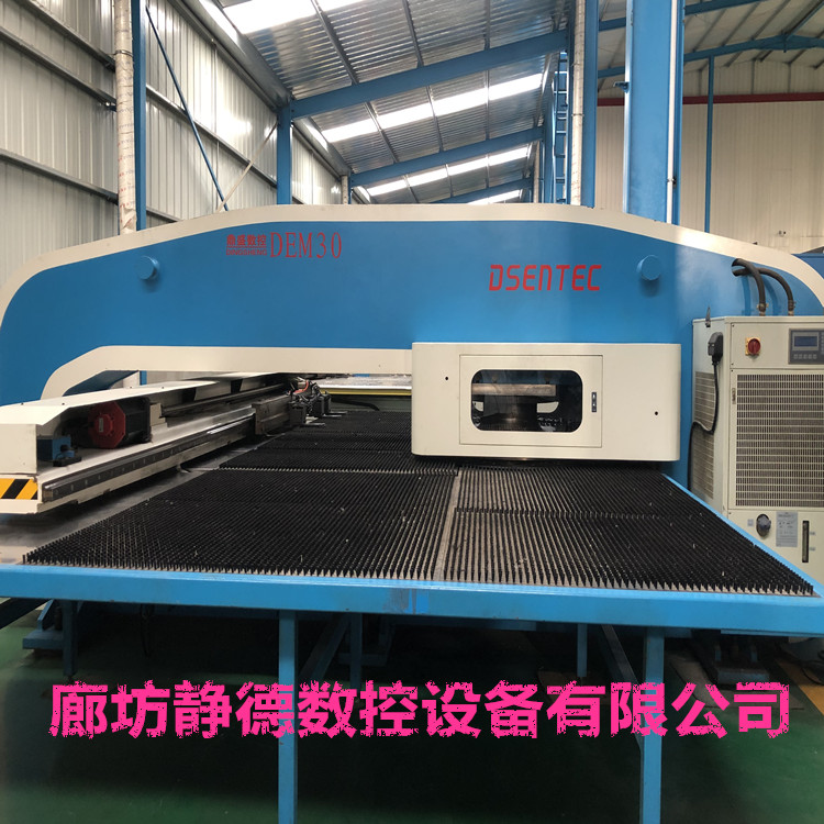 出售转让精品二手扬州鼎盛伺服式数控转塔冲床 数控冲床 型号:DEM30-1250,冲压能力:30吨,伺服式,日本发那科数控系统,32工位,2旋转工位, 加工尺寸:1250*5000MM,2017年3月份生产 ,成色:9.5成新,该机为伺服式速度更快,更省电 ,可以进行滚筋,打标,刻字等特殊工艺加工!本机可以进行,百叶窗,拉包,单双桥等特殊工艺加工。设备已调试完毕,可现场试机,现场尺测精度,保证正负十丝以内的新机精度。我公司负责设备安装、调试、培训,保修三个月,24小时技术支持,终身配件供应,免费赠送编程软件,终身免费维护,机会难得,预购从速。廊坊静德数控设备有限公司 联系人:田永强13785632893可加微信。