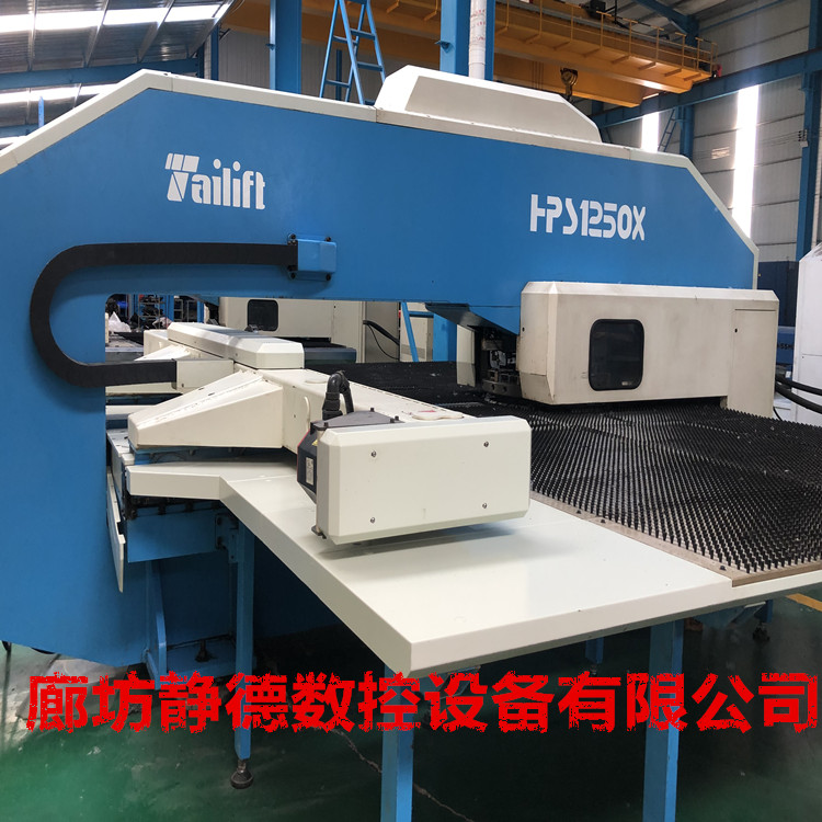 出售转让_高性价比_精品二手台湾台励福数控转塔冲床、数控冲床HPS1250X ,型号:HPS1250X,油压伺服式,冲压能力:20吨,日本发那科数控系统,34工位,2旋转工位, 加工尺寸:1250*5000MM,大版面,2011年3月产 ,9.5成新!每分钟冲次1500次,油压伺服机,本机可以进行滚筋,滚切,打标,刻字等特殊工艺加工。该机购入时花了130万,没用几天,企业转型了,就是一台新机,已调试完毕,保证精度,可现场试机。每台设备到店以后都要进行30多项检测,各项功能性能达到新机精度方可出售!我公司免费安装、调试、培训,保修三个月,赠送编程软件,24小时技术支持,终身配件供应,机会难得,预购从速。廊坊静德数控设备有限公司 销售顾问:田永强 13785632893可加微信。