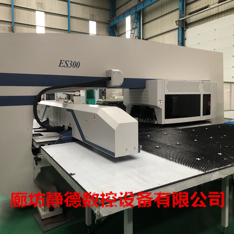 出售转让_高性价比_精品二手青岛大东全电伺服式数控转塔冲床ES300 数控冲床,型号:ES300,成色:全新!冲压能力:30吨,32工位,2旋转工位,加工尺寸:1500*5000mm超大板面,2023年3月份出厂 ,该机为全电伺服式冲床,速度更快,更省电,可以进行滚筋,打标,刻字等特殊工艺加工!每台设备到店都要进行30多项检测、检修,各项功能性能达到新机精度方可出售!设备已调试完毕,可现场试机,现场打板,现场尺测精度,保证设备正负十丝以内的新机精度。所售设备我公司免费安装、调试、培训员工、保修三个月。 廊坊静德数控设备有限公司 销售顾问:田永强13785632893可加微信。