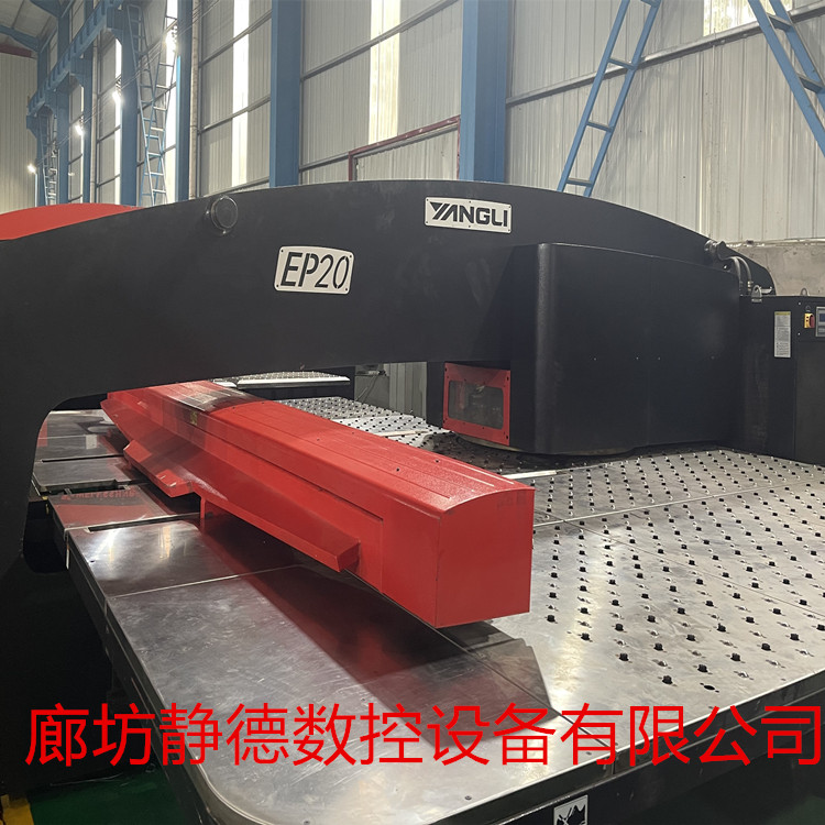 出售转让二手 江苏扬力数控冲床 数控转塔冲床型号:EP20,全电伺服式,冲压能力20吨,30工位,2旋转工位,德国西门子数控系统,加工板材尺寸:1500*5000MM,生产日期2017年12月,该机购入后安装少用,9.9成新!该机为~全电伺服式数控转塔冲床,可以进行滚筋、滚切、打标等特殊工艺加工。每台设备到店都要进行30多项检测检修,各项功能、性能、达到新机精度方可出售!设备已调试完毕,可现场试机,现场冲孔,现场尺测精度,保证正负十丝的新机精度。我公司免费安装、调试、培训,保修三个月,24小时技术支持,终身配件供应,机会难得,预购从速。廊坊静德数控设备有限公司 销售顾问:田永强:13785632893可加微信