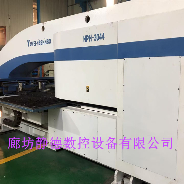 出售转让_高性价比_精品二手江苏亚威数控冲床 数控转塔冲床HPH3044,冲压能力:30吨,液压式,德国西门子系统,36工位,2旋转工位, 加工尺寸:1250*2500MM,2015年5月份出厂,成色:9.5成新!本机可以进行百叶窗,单双桥等特殊工艺加工。每台设备到店都要进行30多项检测,检修,确保各项功能性能达到新机水平方可出售!已调试完毕,可现场试机!现场绘图、现场打版,现场尺测精度、保证正负十丝以内的新机精度。我公司所售设备包安装、调试、培训,保修三个月,24小时线上技术支持,免费赠送编程软件,终身配件供应,终身维护,机会难得,预购从速。廊坊静德数控设备有限公司 联系人:田永强13785632893可加微信。
