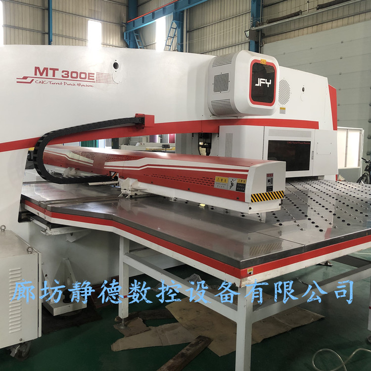 出售转让_高性价比_精品二手全新江苏金方圆MT300E全电伺服式数控转塔冲床 数控冲床 金方圆产,全电伺服冲,冲压能力:30吨,32个工位,2个旋转工位, 伺服式,加工尺寸:1500*5000MM大板面,2020年2月出厂 ,该机为全电伺服式冲床,更快,更省电,可以进行滚筋,打标,刻字等特殊工艺加工!成色:全新!该机购入后未用,现挥泪出售,机会难得,预购从速!设备已调试完毕,可现场试机,现场打板,现场尺测精度,保证设备正负十丝以内的新机精度。所售设备我公司免费安装、调试、培训员工、保修三个月。 廊坊静德数控设备有限公司 销售顾问:田永强13785632893可加微信。