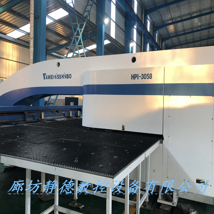 出售转让_高性价比_精品二手江苏亚威数控转塔冲床HPI3058数控转塔冲床 数控冲床 江苏亚威产,型号:HPI3058,德国西门子数控系统,油压伺服冲,冲压能力:30吨,26工位,2旋转工位,加工尺寸:1500*5000MM超大版面,2015年12月份出厂 ,9.5成新!该机为油压伺服式冲床,更快,更省电,可以进行滚筋,打标,刻字等特殊工艺加工!该机购入后安装少用,成色全新。 每台设备到店都要进行30多项检测,各项功能性能达到新机精度方可出售!设备已调试完毕,可现场试机,现场打板,现场尺测精度,保证设备正负十丝以内的新机精度。所售设备我公司免费安装、调试、培训员工、保修三个月。 廊坊静德数控设备有限公司 销售顾问:田永强13785632893可加微信。
