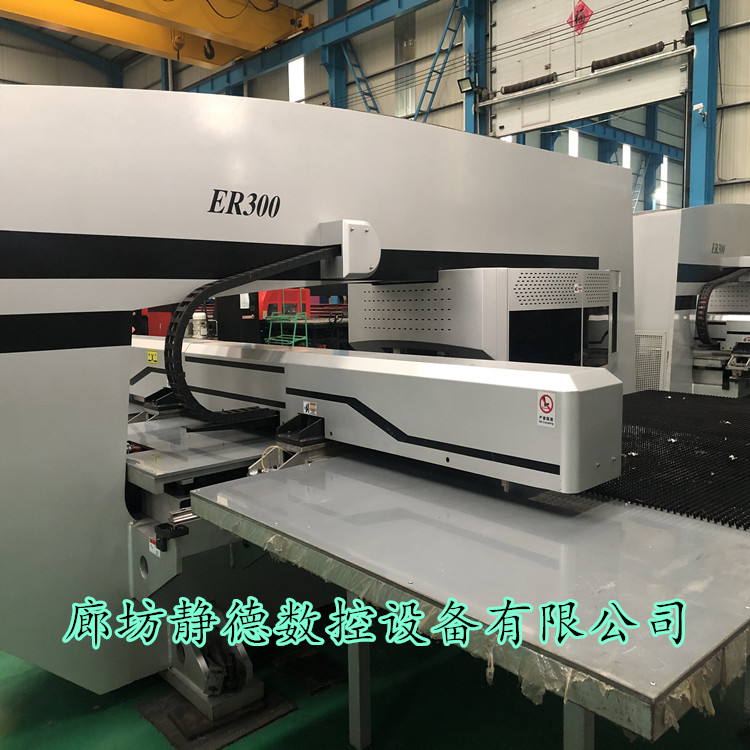 出售转让_高性价比_精品二手青岛大东全电伺服式数控转塔冲床ER300 数控冲床,型号:ER300,伺服式,德国力士乐数控系统,冲压能力:30吨,32工位,2旋转工位,加工尺寸:1250*5000mm大板面,2021年3月份出厂 ,成色:9.9成新!该机为全电伺服式冲床,速度更快,更省电,可以进行滚筋,打标,刻字等特殊工艺加工!每台设备到店都要进行30多项检测、检修,各项功能性能达到新机精度方可出售!设备已调试完毕,可现场试机,现场打板,现场尺测精度,保证设备正负十丝以内的新机精度。所售设备我公司免费安装、调试、培训员工、保修三个月。 廊坊静德数控设备有限公司 销售顾问:田永强13785632893可加微信。