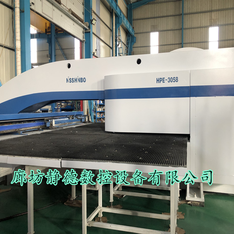 出售转让_高性价比_精品二手江苏亚威全电伺服式数控转塔冲床、数控冲床 型号:HPE3058,冲压能力:30吨,德国西门子数控系统,26工位,2个旋转工位, 加工尺寸:1500*5000MM,2015年5月份出厂,9.5成新,每分钟冲次1800次,速度快,冲压更稳定,可进行滚筋,滚切,打标,刻字,百叶窗,拉包,单双桥等特殊工艺加工。购入后使用不多,全电伺服式,节能高效,环保,速度快!每台设备到店都要进行30多项检测,各项功能性能达到新机精度方可销售!设备已调试完毕,可现场试机!现场绘图,现场打板,现场尺测精度,保证正负十丝以内的新机精度!所售设备 免费安装、调试、培训,保修三个月,赠送编程软件,24小时技术支持,终身配件供应,机会难得,预购从速。廊坊静德数控设备有限公司 销售顾问:田永强13785632893可加微信。