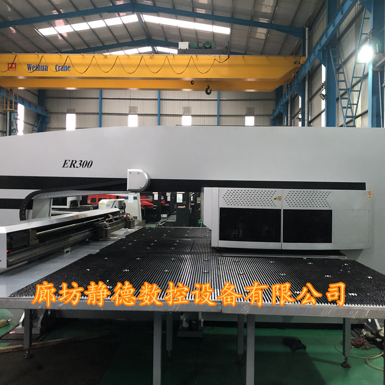 出售转让_高性价比_精品二手青岛大东全电伺服式数控转塔冲床ER300 数控冲床,型号:ER300,伺服式,冲压能力:30吨,32工位,2旋转工位,加工尺寸:1500*5000mm大板面,2020年8月份出厂 ,成色:9.9成新!该机为全电伺服式冲床,速度更快,更省电,可以进行滚筋,打标,刻字等特殊工艺加工!每台设备到店都要进行30多项检测、检修,各项功能性能达到新机精度方可出售!设备已调试完毕,可现场试机,现场打板,现场尺测精度,保证设备正负十丝以内的新机精度。所售设备我公司免费安装、调试、培训员工、保修三个月。 廊坊静德数控设备有限公司 销售顾问:田永强13785632893可加微信。