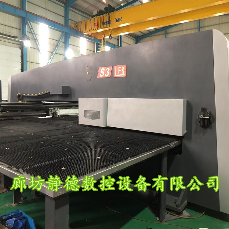 出售转让_高性价比_精品二手香港梁发记伺服式数控转塔冲床、伺服数控冲床S3-2025-0IPD,全电伺服式,9.5成新,冲压能力:30吨,日本发那科数控系统,30工位,2旋转工位,加工板面2000*5000MM,2015年1月产 ,原厂购入后保养很好,9.9成新。伺服式数控转塔冲床,速度更快,更省电,可以进行滚筋,打标,刻字等特殊工艺加工!每台设备到店都要进行30多项检测,各项功能、性能、达到新机精度方可出售。设备已调试完毕,可现场试机,现场冲孔,现场尺测精度,保证设备正负十丝以内新机精度!所售设备包安装、调试、培训,保修三个月,赠送编程软件,24小时技术支持,终身配件供应,机会难得,预购从速。廊坊静德数控设备有限公司 联系人:田永强13785632893可加微信。