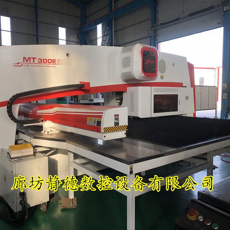 出售转让_高性价比_精品二手全新江苏金方圆MT300E全电伺服式数控转塔冲床 数控冲床 金方圆产,型号:MT300E,全电伺服冲,冲压能力:30吨,32工位,2旋转工位,加工尺寸:1500*5000MM,超大版面,2020年5月出厂 ,该机为全电伺服式冲床,速度更快,更省电,可以进行滚筋,打标,刻字等特殊工艺加工!成色:全新!该机购入后安装少用,现优惠出售,机会难得,预购从速!每台设备到店都要进行30多项检测,各项功能性能达到新机精度方可出售!设备已调试完毕,可现场试机,现场打板,现场尺测精度,保证设备正负十丝以内的新机精度。所售设备我公司免费安装、调试、培训员工、保修三个月。 廊坊静德数控设备有限公司 销售顾问:田永强13785632893可加微信。